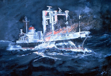 Es war der 13.November 1972, nachts um 02:23 Uhr. Wir hatten vor 1,5 Stunden Ushant passiert und waren bei NW Wind, Stärke 7/8, in der Biscaya eingelaufen. MS”Santa Cruz” rollte in einer hohen Dünung